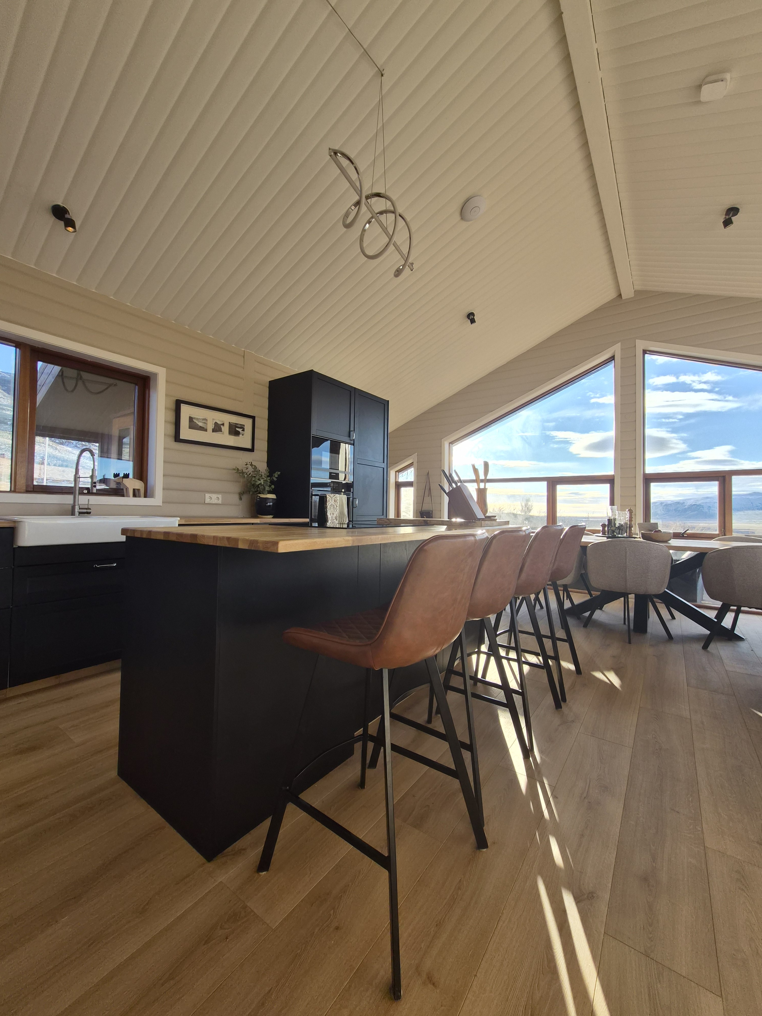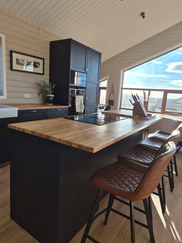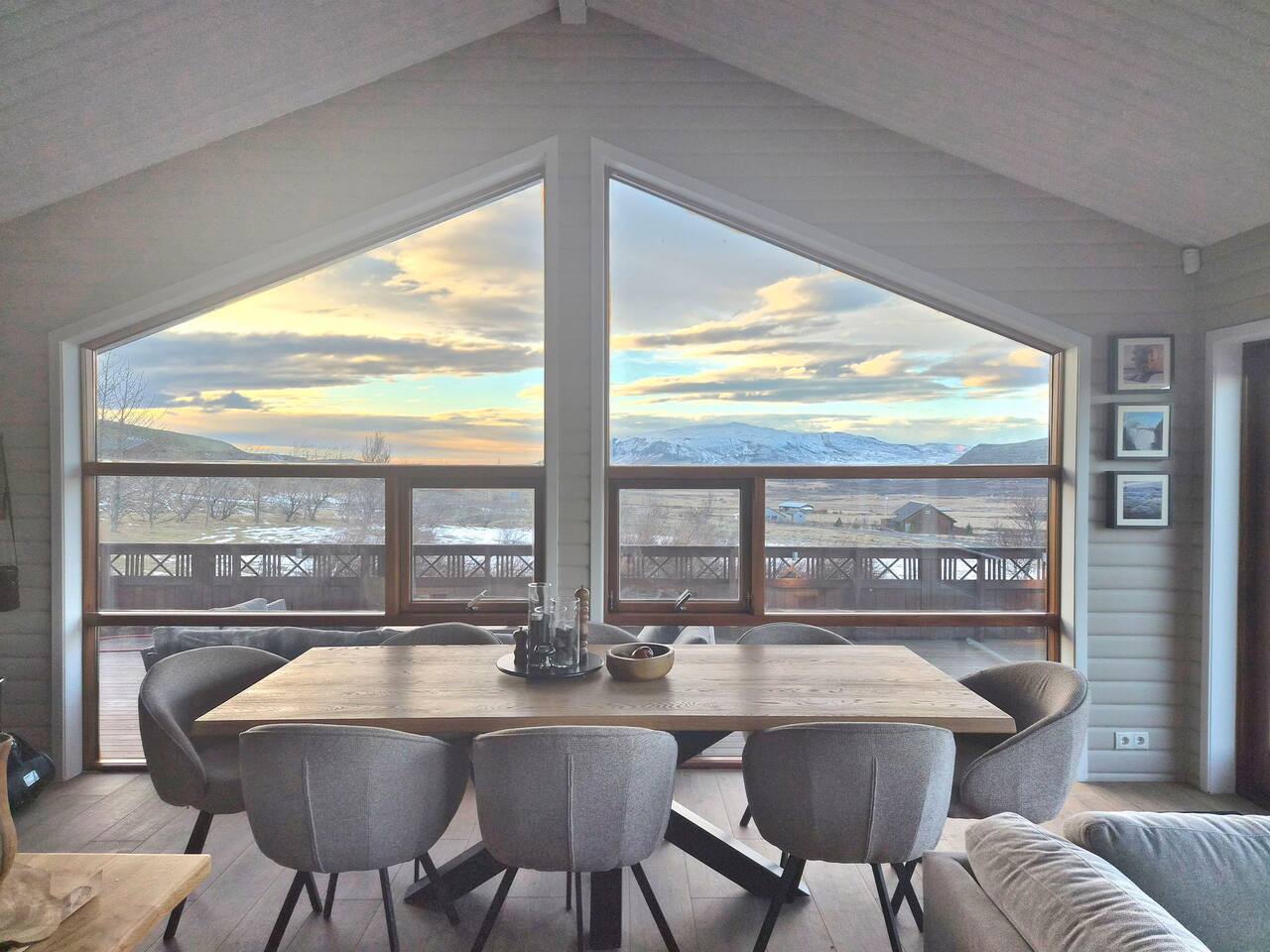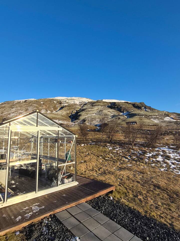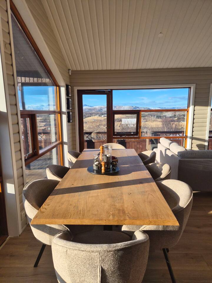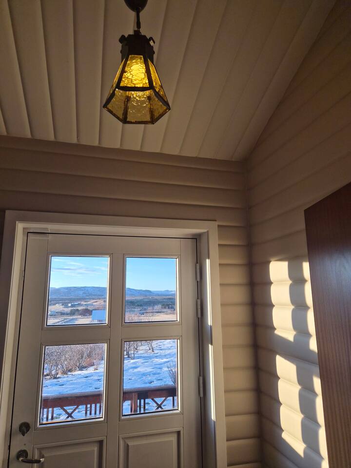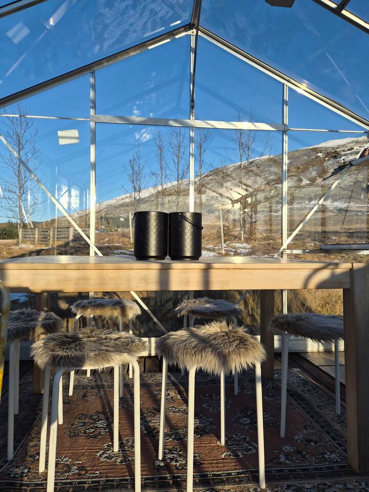 Welcome to our newly renovated three bedroom luxury cabin, perfectly positioned in the heart of the Golden Circle. Surrounded by sweeping countryside, mountains, and endless Icelandic skies, this is a place designed for unforgettable moments. ✨ The Cabin at a Glance • Two bedrooms with a King, Queen bed in the main cabin, and in the next door lodge we have a double bedroom (and a sofa bed available on request) • Newly renovated with high-end finishes and thoughtful design throughout • Adjustable underfloor heating in every room • Two separate toilets • Wraparound deck with panoramic countryside and mountain views • Located in a gated community offering privacy and peace of mind • Child friendly with crib and highchair available on request • EV charger available on request • Open plan kitchen and living area with a cosy nook ideal for board games or remote work • High speed Starlink WiFi for fast and reliable connection, essential in rural areas • Infrared sauna, Northern Lights greenhouse, and a fully equipped private entertainment lodge with cinema and games room 🎬 Entertainment Lodge • Separate dedicated space for relaxation and entertainment • State-of-the-art cinema with 4K laser projector on a 120” screen and Dolby Atmos surround sound • 6’ pool table, foosball table, and darts board Children can enjoy movies and games in the lodge while adults relax in the cabin, or everyone can gather for a private cinema night. The layout allows for both shared experiences and quiet moments. 📍 Location & The Journey • Approximately 45 minutes from Reykjavík in summer • A scenic drive past Icelandic horses, rivers, lava fields, and wide open landscapes • Prime Golden Circle location near Selfoss • Close to waterfalls, hiking trails, geothermal spas including Fontana and the Secret Lagoon, and charming local villages This cabin blends comfort, privacy, and entertainment with the raw beauty of Iceland. Whether you are warming up in the sauna, watching the Northern Lights from the greenhouse, or sharing breakfast on the deck with mountain views, every detail is designed to make your stay special. If you have any questions, we would be delighted to assist you.
