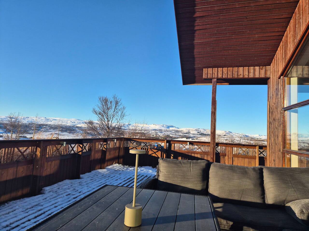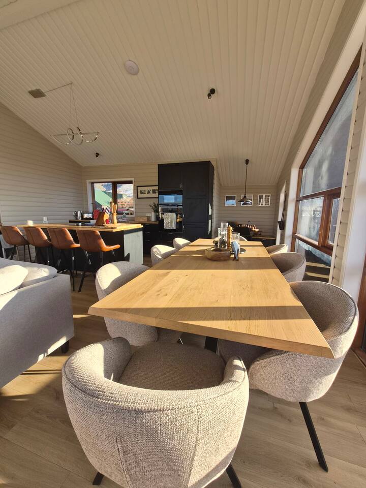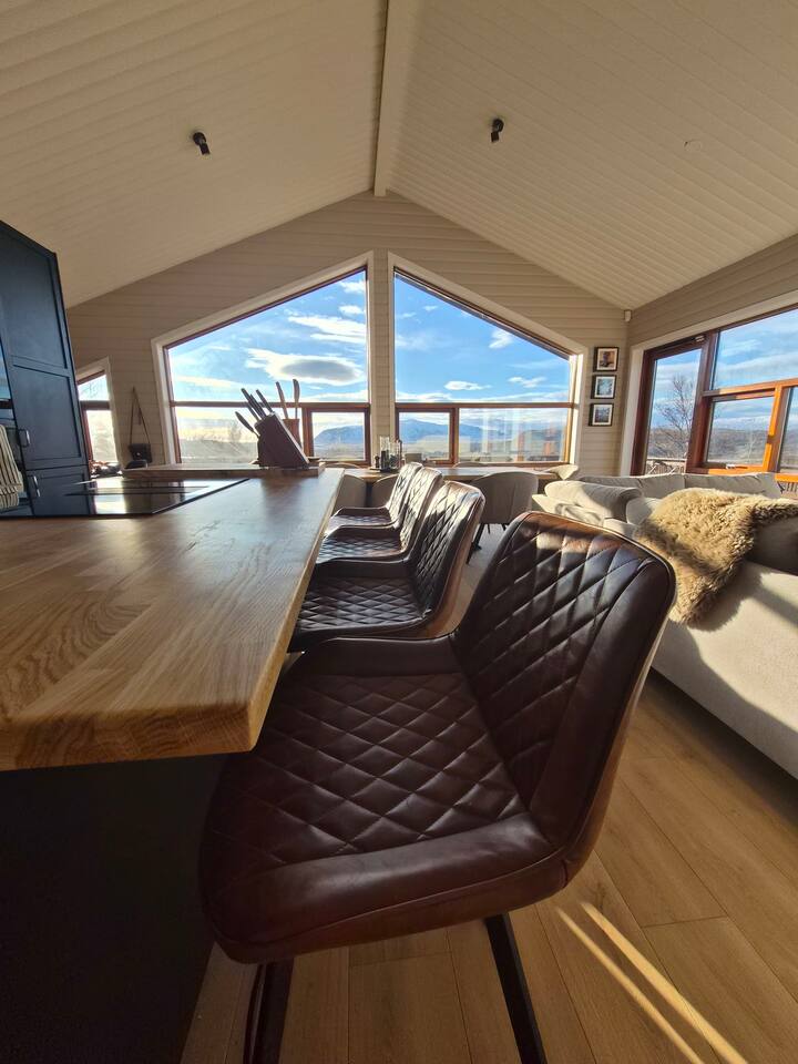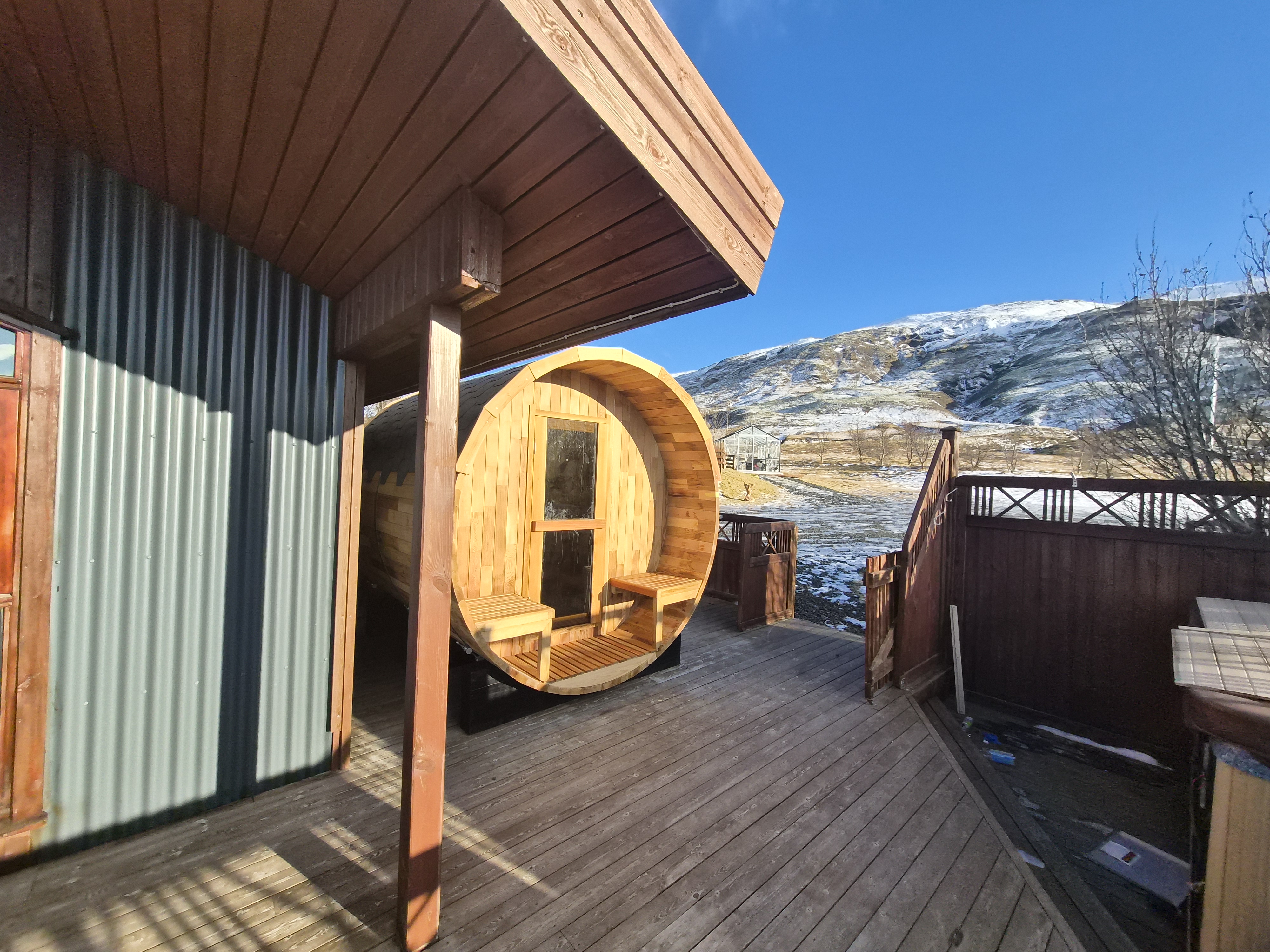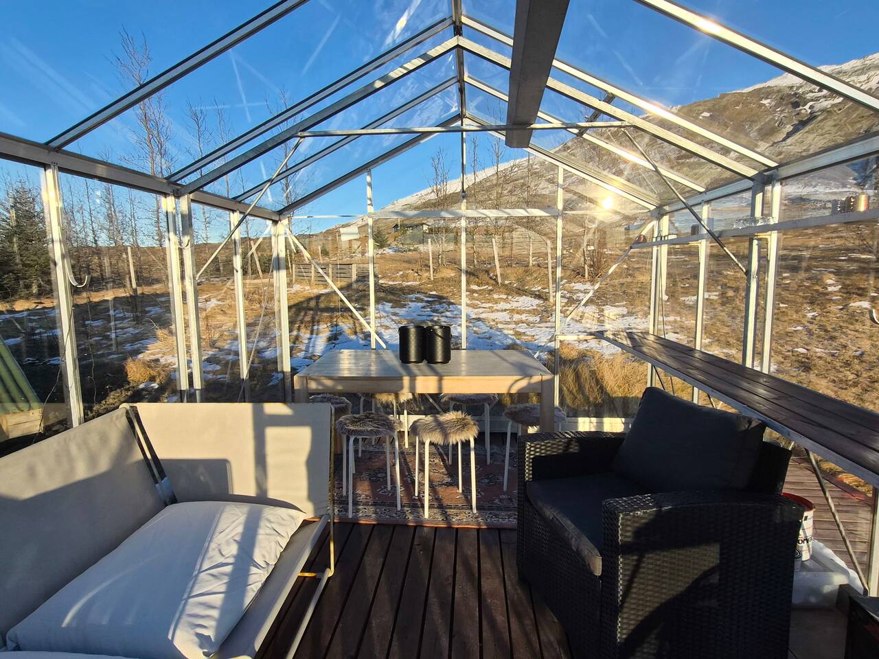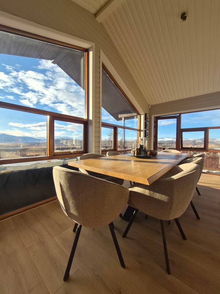 Welcome to our newly renovated three bedroom luxury cabin, perfectly positioned in the heart of the Golden Circle. Surrounded by sweeping countryside, mountains, and endless Icelandic skies, this is a place designed for unforgettable moments. ✨ The Cabin at a Glance • Two bedrooms with a King, Queen bed in the main cabin, and in the next door lodge we have a double bedroom (and a sofa bed available on request) • Newly renovated with high-end finishes and thoughtful design throughout • Adjustable underfloor heating in every room • Two separate toilets • Wraparound deck with panoramic countryside and mountain views • Located in a gated community offering privacy and peace of mind • Child friendly with crib and highchair available on request • EV charger available on request • Open plan kitchen and living area with a cosy nook ideal for board games or remote work • High speed Starlink WiFi for fast and reliable connection, essential in rural areas • Infrared sauna, Northern Lights greenhouse, and a fully equipped private entertainment lodge with cinema and games room 🎬 Entertainment Lodge • Separate dedicated space for relaxation and entertainment • State-of-the-art cinema with 4K laser projector on a 120” screen and Dolby Atmos surround sound • 6’ pool table, foosball table, and darts board Children can enjoy movies and games in the lodge while adults relax in the cabin, or everyone can gather for a private cinema night. The layout allows for both shared experiences and quiet moments. 📍 Location & The Journey • Approximately 45 minutes from Reykjavík in summer • A scenic drive past Icelandic horses, rivers, lava fields, and wide open landscapes • Prime Golden Circle location near Selfoss • Close to waterfalls, hiking trails, geothermal spas including Fontana and the Secret Lagoon, and charming local villages This cabin blends comfort, privacy, and entertainment with the raw beauty of Iceland. Whether you are warming up in the sauna, watching the Northern Lights from the greenhouse, or sharing breakfast on the deck with mountain views, every detail is designed to make your stay special. If you have any questions, we would be delighted to assist you.