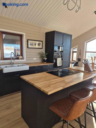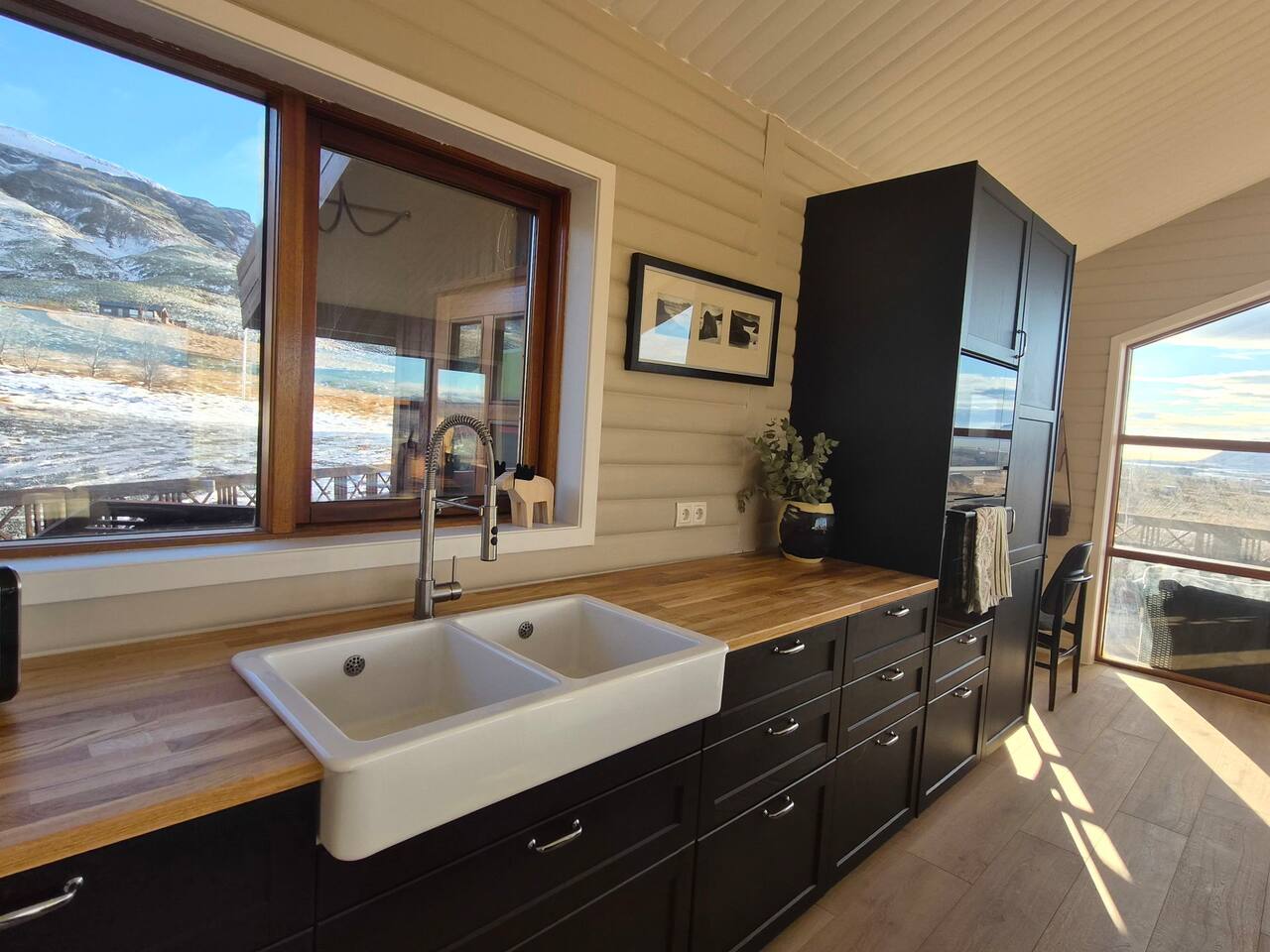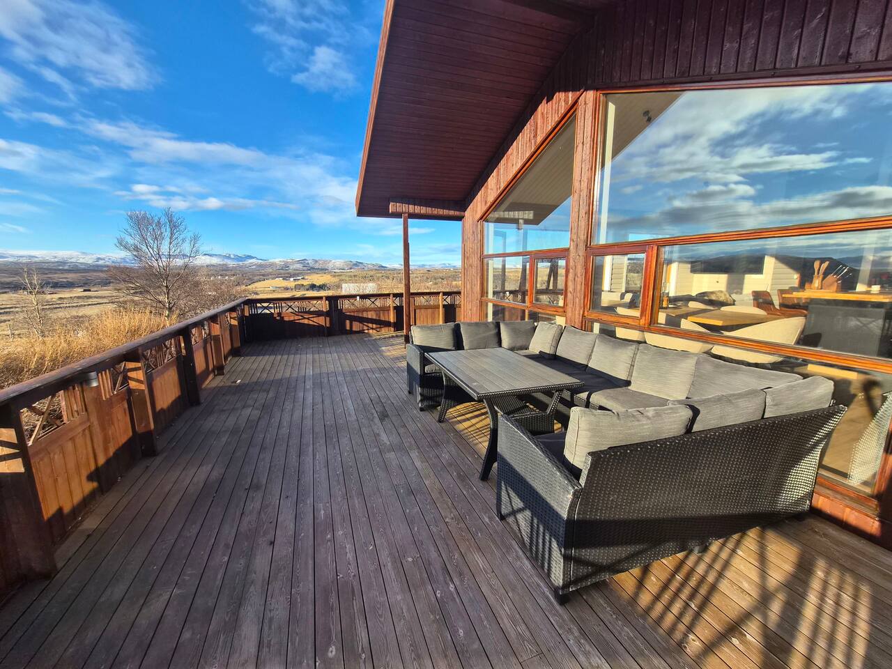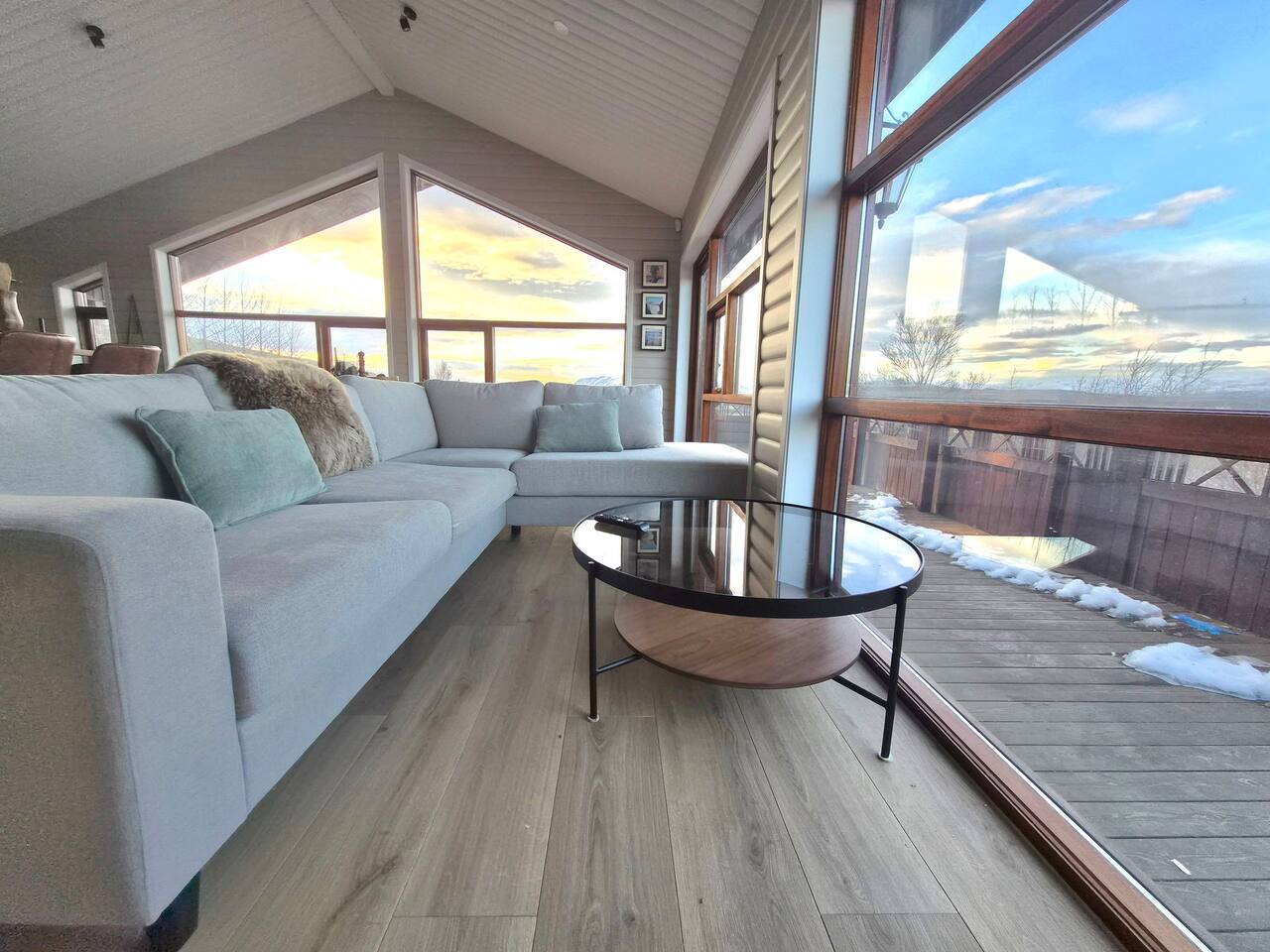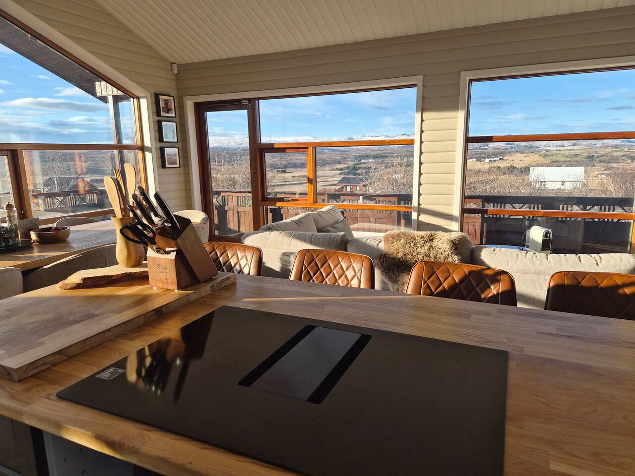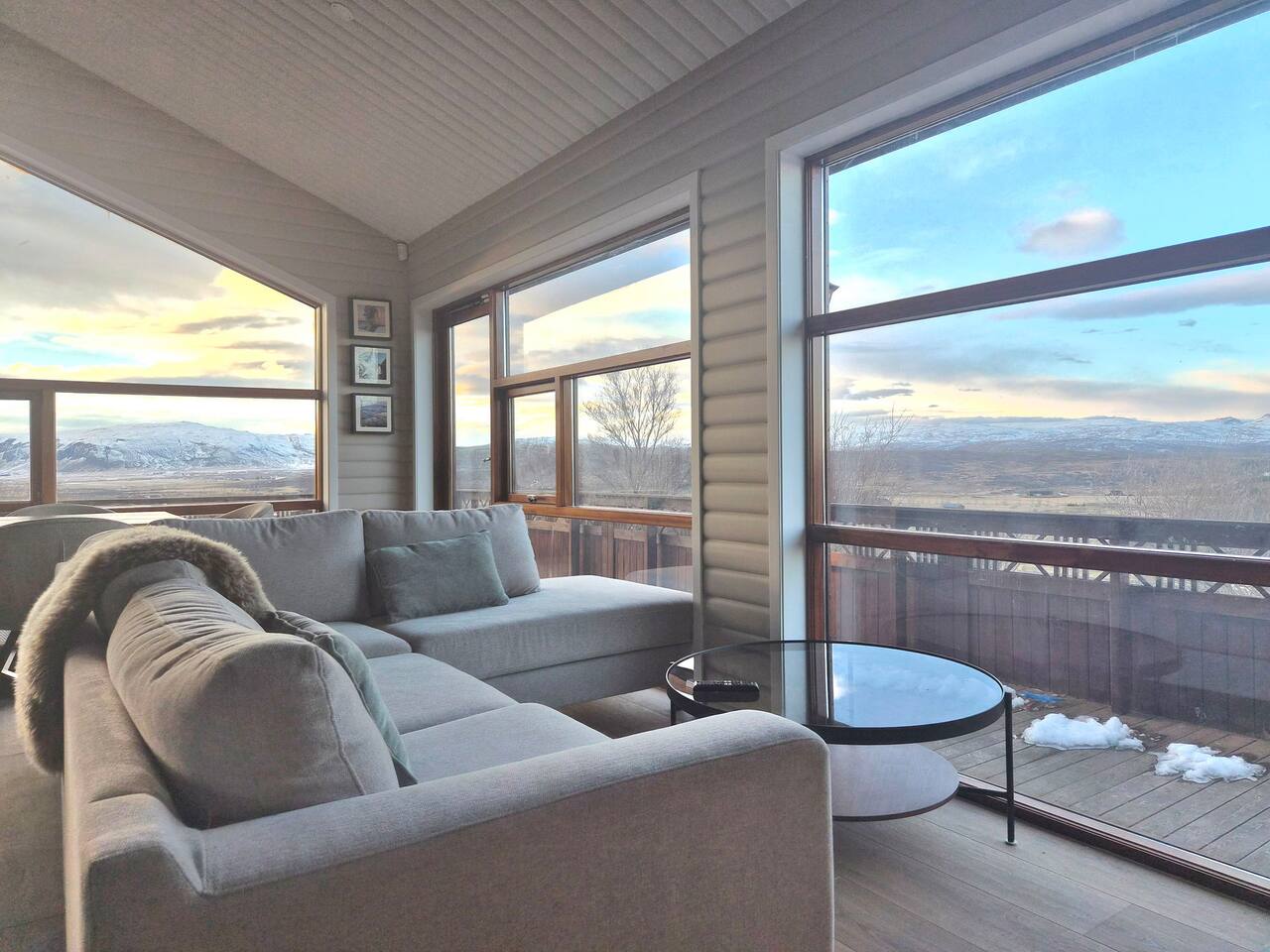 Welcome to our newly renovated three bedroom luxury cabin, perfectly positioned in the heart of the Golden Circle. Surrounded by sweeping countryside, mountains, and endless Icelandic skies, this is a place designed for unforgettable moments. ✨ The Cabin at a Glance • Two bedrooms with a King, Queen bed in the main cabin, and in the next door lodge we have a double bedroom (and a sofa bed available on request) • Newly renovated with high-end finishes and thoughtful design throughout • Adjustable underfloor heating in every room • Two separate toilets • Wraparound deck with panoramic countryside and mountain views • Located in a gated community offering privacy and peace of mind • Child friendly with crib and highchair available on request • EV charger available on request • Open plan kitchen and living area with a cosy nook ideal for board games or remote work • High speed Starlink WiFi for fast and reliable connection, essential in rural areas • Infrared sauna, Northern Lights greenhouse, and a fully equipped private entertainment lodge with cinema and games room 🎬 Entertainment Lodge • Separate dedicated space for relaxation and entertainment • State-of-the-art cinema with 4K laser projector on a 120” screen and Dolby Atmos surround sound • 6’ pool table, foosball table, and darts board Children can enjoy movies and games in the lodge while adults relax in the cabin, or everyone can gather for a private cinema night. The layout allows for both shared experiences and quiet moments. 📍 Location & The Journey • Approximately 45 minutes from Reykjavík in summer • A scenic drive past Icelandic horses, rivers, lava fields, and wide open landscapes • Prime Golden Circle location near Selfoss • Close to waterfalls, hiking trails, geothermal spas including Fontana and the Secret Lagoon, and charming local villages This cabin blends comfort, privacy, and entertainment with the raw beauty of Iceland. Whether you are warming up in the sauna, watching the Northern Lights from the greenhouse, or sharing breakfast on the deck with mountain views, every detail is designed to make your stay special. If you have any questions, we would be delighted to assist you.